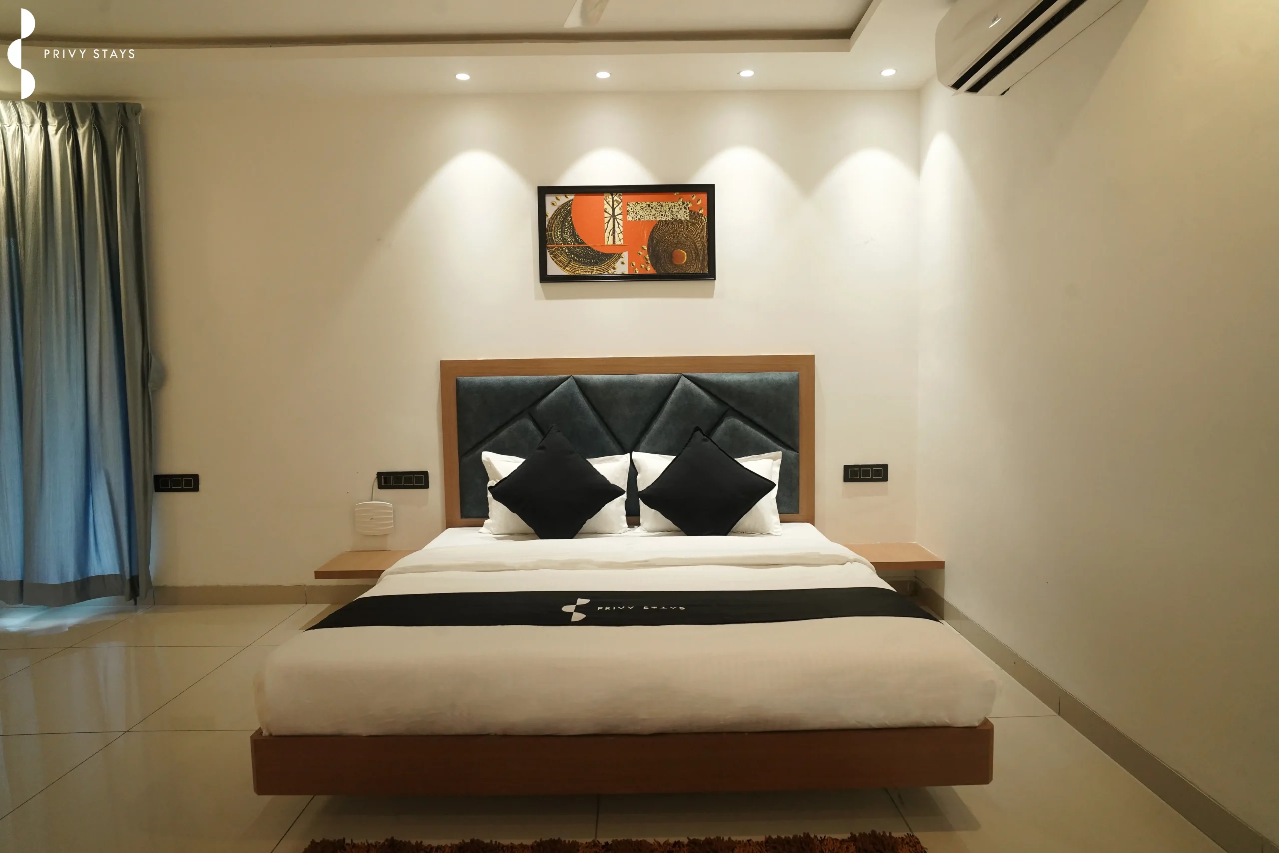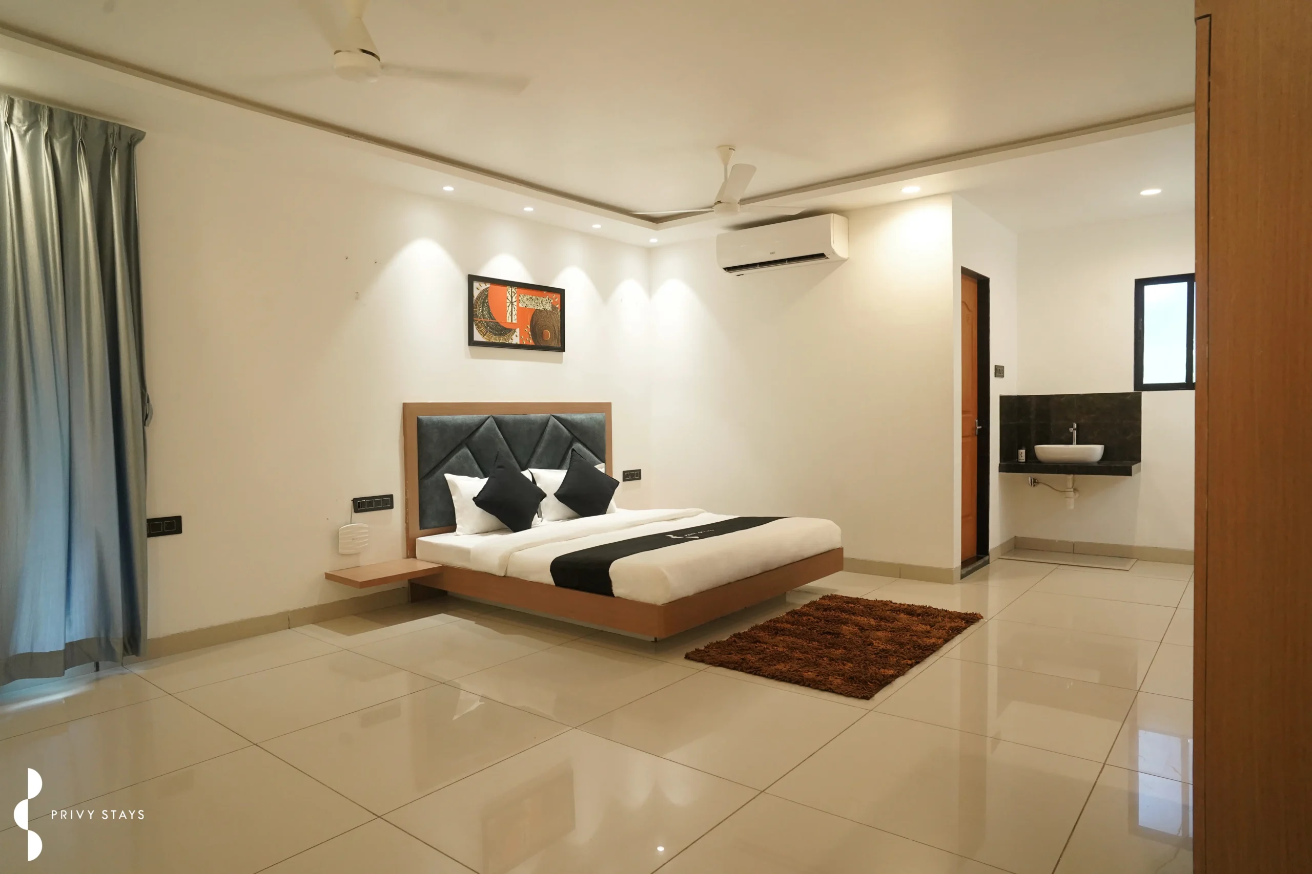 The rooms combine comfort, simplicity, and functionality to create a peaceful atmosphere for guests looking to relax during their stay in Alibag.