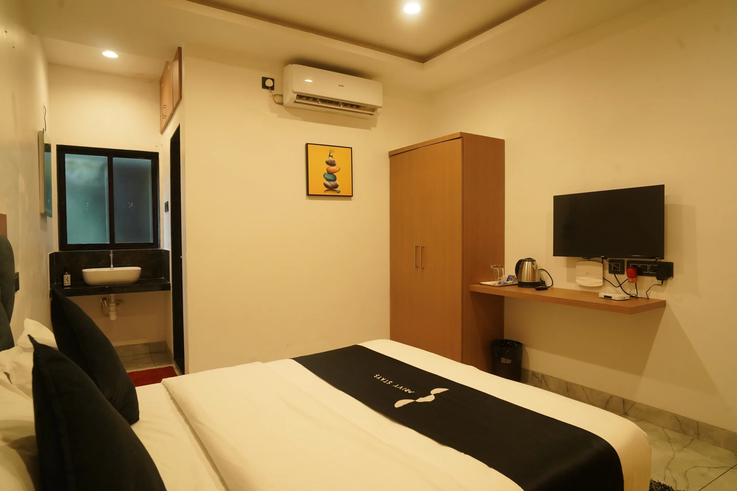 One of the most popular accommodation options at Coral Sand Beach Resort Alibag is the Couple AC Room with Garden View. These rooms are ideal for couples or small families who want a comfortable stay in a calm and refreshing environment surrounded by greenery.