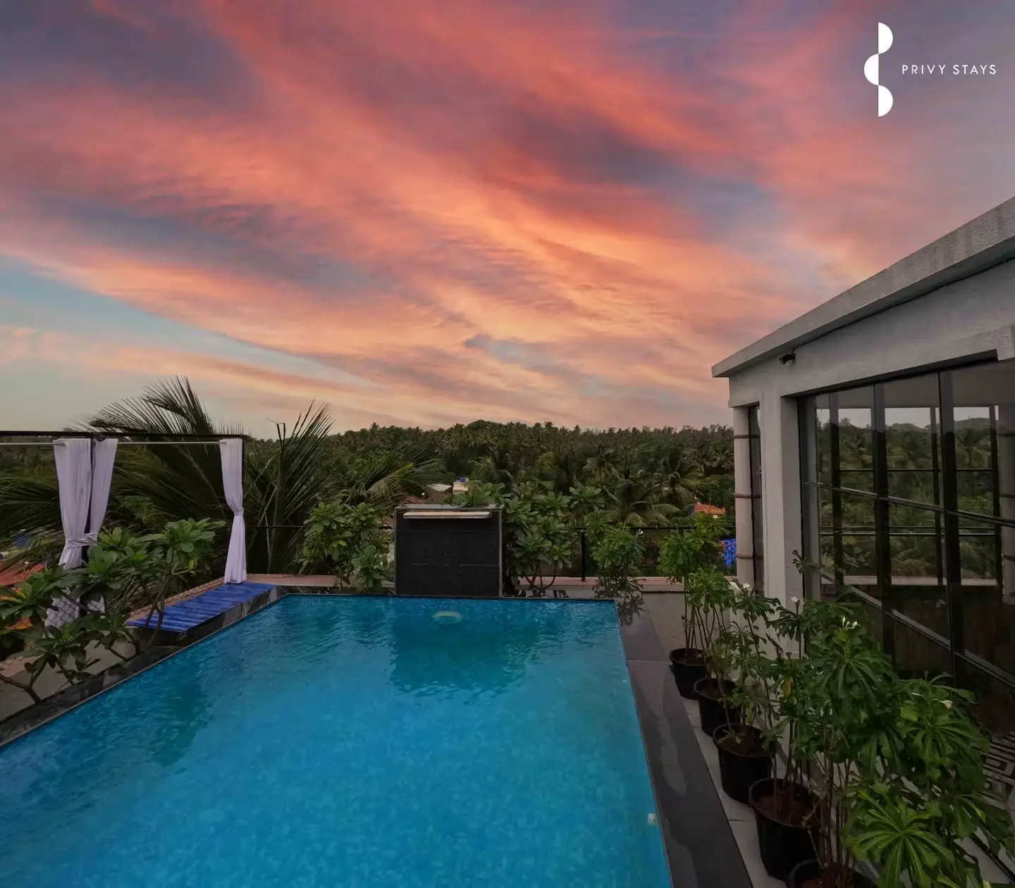 One of the most magical experiences here is the rooftop infinity-style pool. You can take a refreshing dip while watching the sun go down or relax by the pool with your partner under the open sky. The cabin has a warm and intimate vibe — perfect for anniversaries, honeymoon getaways, or just a quiet break with someone special. Many guests say this is one of the most peaceful holiday homes in Alibaug where they felt completely disconnected from the busy world and more connected with nature and their partner.