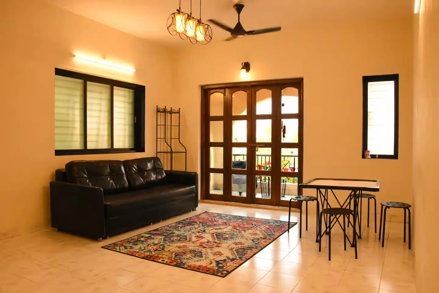 Set in a calm residential area, this property is perfect for laid-back vacations but not suitable for loud parties or events. It’s best enjoyed by families or small office groups who want to spend quality time together without the noise of a typical tourist spot. Even though it may not feature a swimming pool or a sea-facing view, it makes up for it with peace, safety, and privacy — things many travelers truly value. Plus, it's a pet-friendly villa in Alibaug, so you don’t have to leave your furry companions behind. They’ll love the open space and quiet atmosphere just as much as you will.