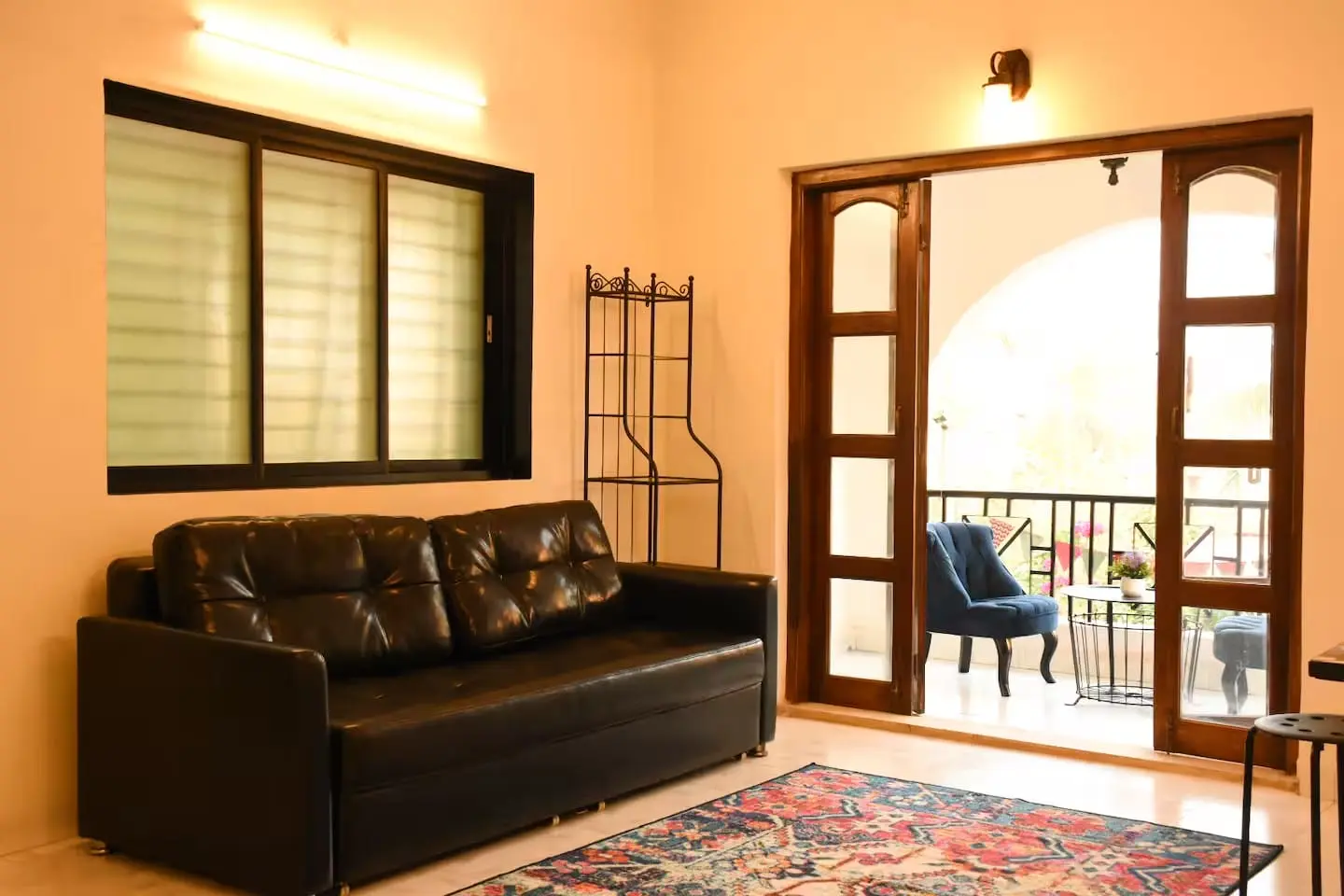 This budget-friendly villa in Alibaug is designed for comfort, not show. While it may not have the glitz of a luxury resort, its true charm lies in its simplicity and warmth. There are five spacious bedrooms, each designed with privacy in mind, so every guest gets their own cozy space to rest and recharge. The living room is ideal for long chats, games, or movie nights, while the kitchen is fully equipped for guests who enjoy cooking or prefer home-cooked meals during their stay. You’ll also get access to daily housekeeping and other essential services, ensuring a clean and convenient experience.
